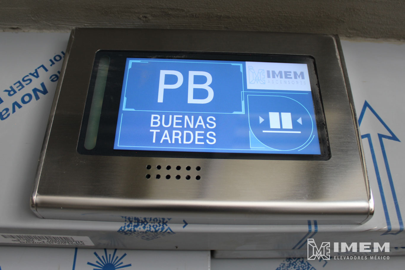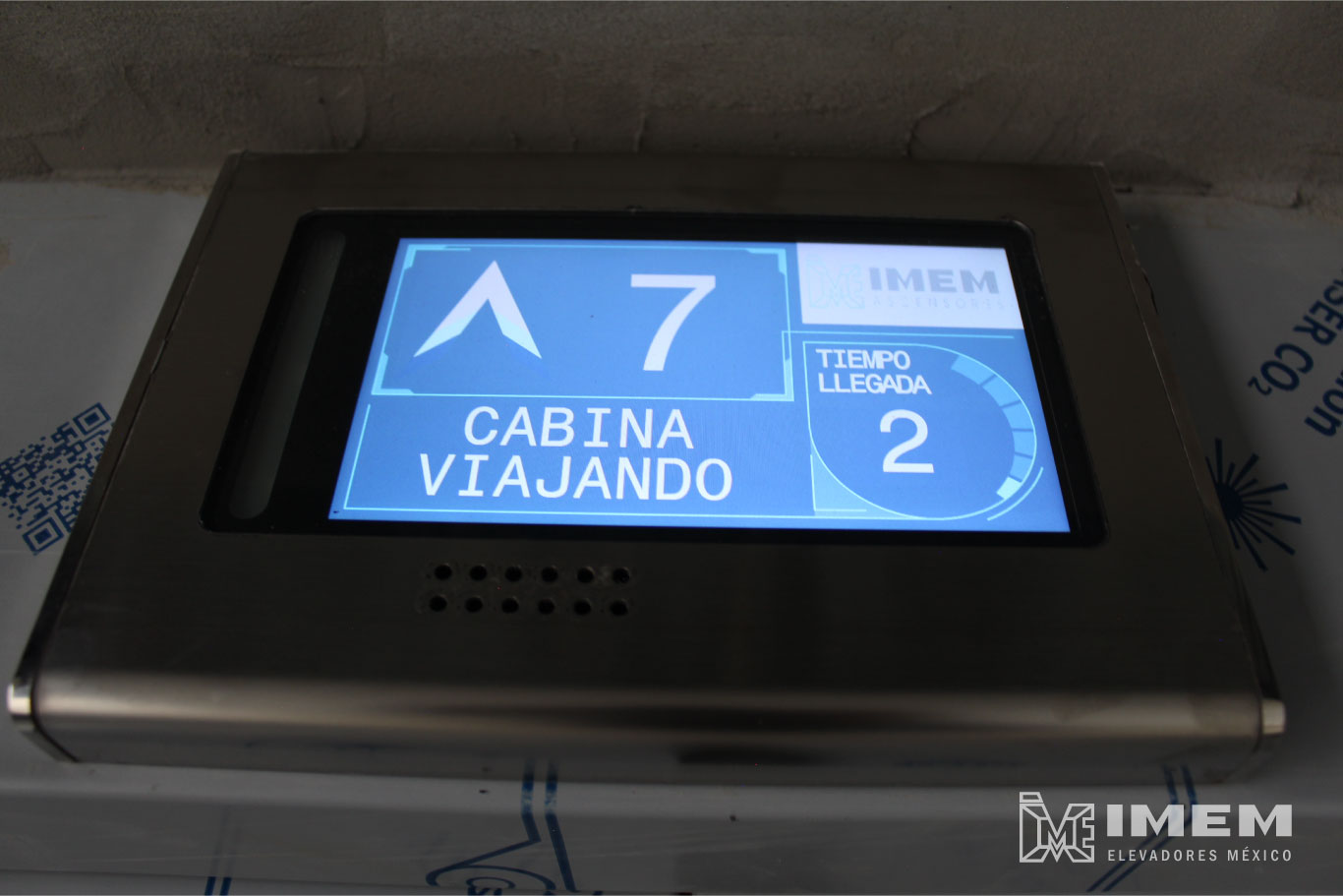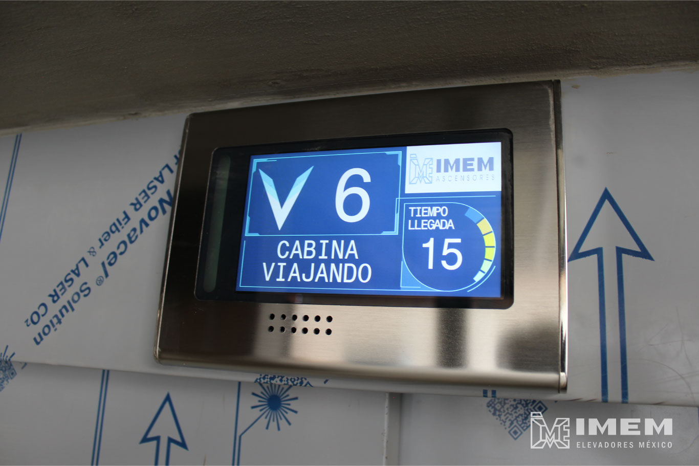 Display SMART TECH: en pasillo y cabina que brindan información relevante del equipo : Mensajes de Bienvenida, Posición y dirección de viaje, Flash LEED de arribo, Mensajes de Estado físico del Elevador , Mensajes de tiempo de arribo a piso, Mensajes de Voz.